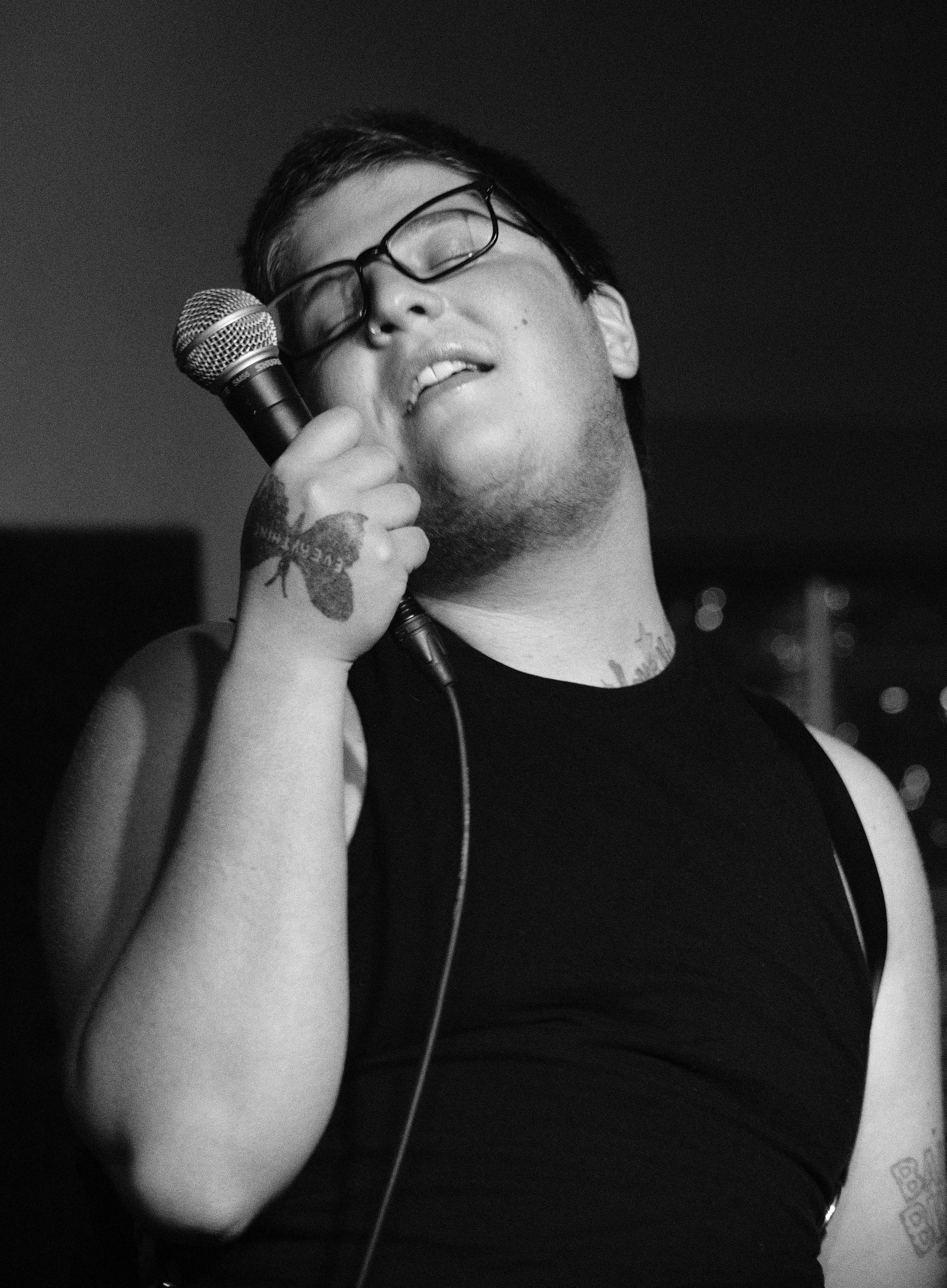 In 2022 I became a vocalist and co-songwriter in the Minneapolis based band Egg Girl Girl. Each Egg Girl Girl set was a different theme with planned sketches. Though we co-collaborated in developing these themes and writing sketch outlines, I was often the primary originator, along with fellow artist May Klug. During our active years (2022-2023) you could see Egg Girl Girl play chubby bunny with audience members as “summer camp counselors”, put tube socks on hour hands to act as bowling pins so that an audience member could bowl a strike at local alley Memory Lanes, and host a live dating game that resulted in an audience member winning a real date with our planted mystery bachelor by our final song. I often designed the fliers for Egg Girl Girl performances, and acted as band manager, taking duty over our social media content creation and strategy, as well as being the point of contact for bookers and other bands. Though Egg Girl Girl has since disbanded, I began a drum machine and guitar duo with Daniel Hughes called Selfish Teammate in 2023. I continue to play with Selfish Teammate, take over band manager duties, and work to book multi-genre shows throughout the Twin Cities in addition to being the sole songwriter.